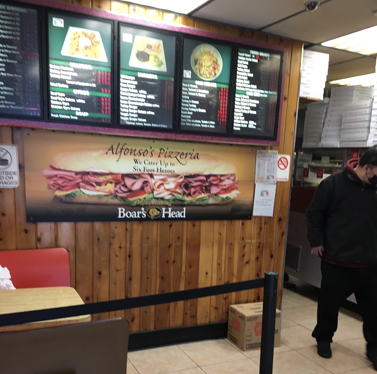 To finish, desserts such as New York Style Strawberry Cheesecake, New York Style Cheesecake, 6 Mini Cannoli, Large Cannoli, and Tiramisù pair nicely with café drinks like Coffee, Espresso, Tea, and Hot Chocolate, or fun beverages ranging from Iced Caramel Colada and Iced Mocha Colada to Blue Slushy and Pineapple Slushy. Overall, Alfonso’s menu feels like a complete snapshot of a neighborhood favorite-generous, diverse, and designed to satisfy any craving.